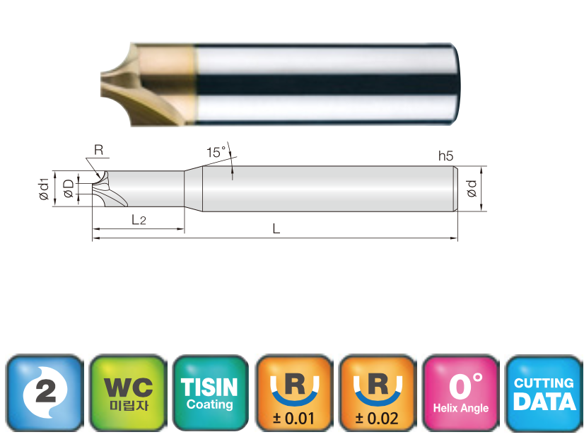 Endmills for various work materials, hardened steel(HRc ~52), pre-hardened steel, tool steel and cast iron.