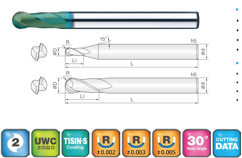 2PHCB (Ultra Precision Ball End Mills)