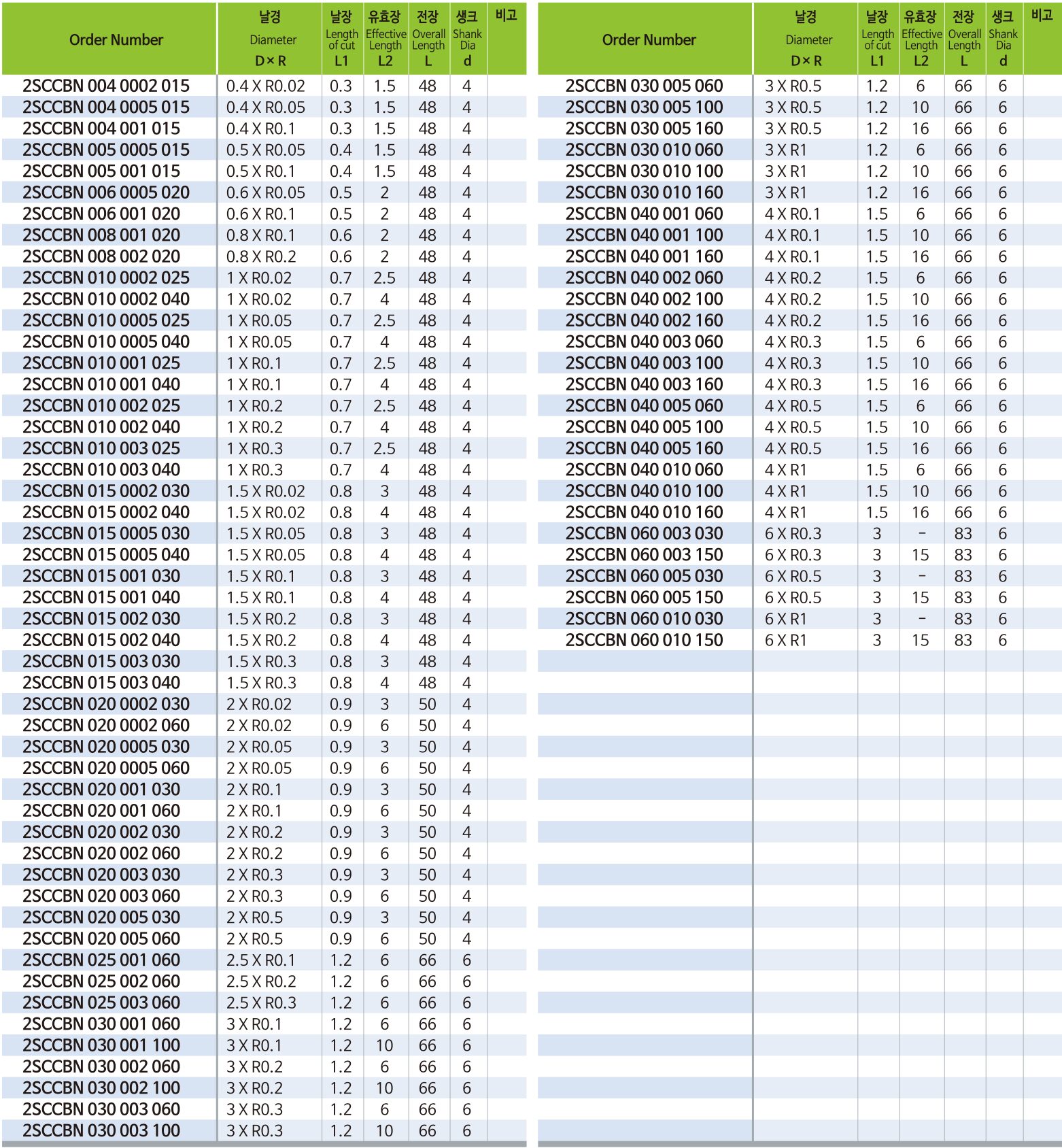 2SCCBN (CBN Straight Rib Corner End Mills)