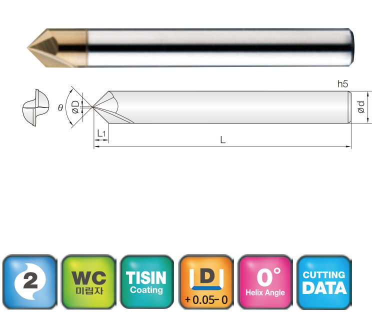 • Optimum for NC engraving, chamfering and centering with straightflutes.