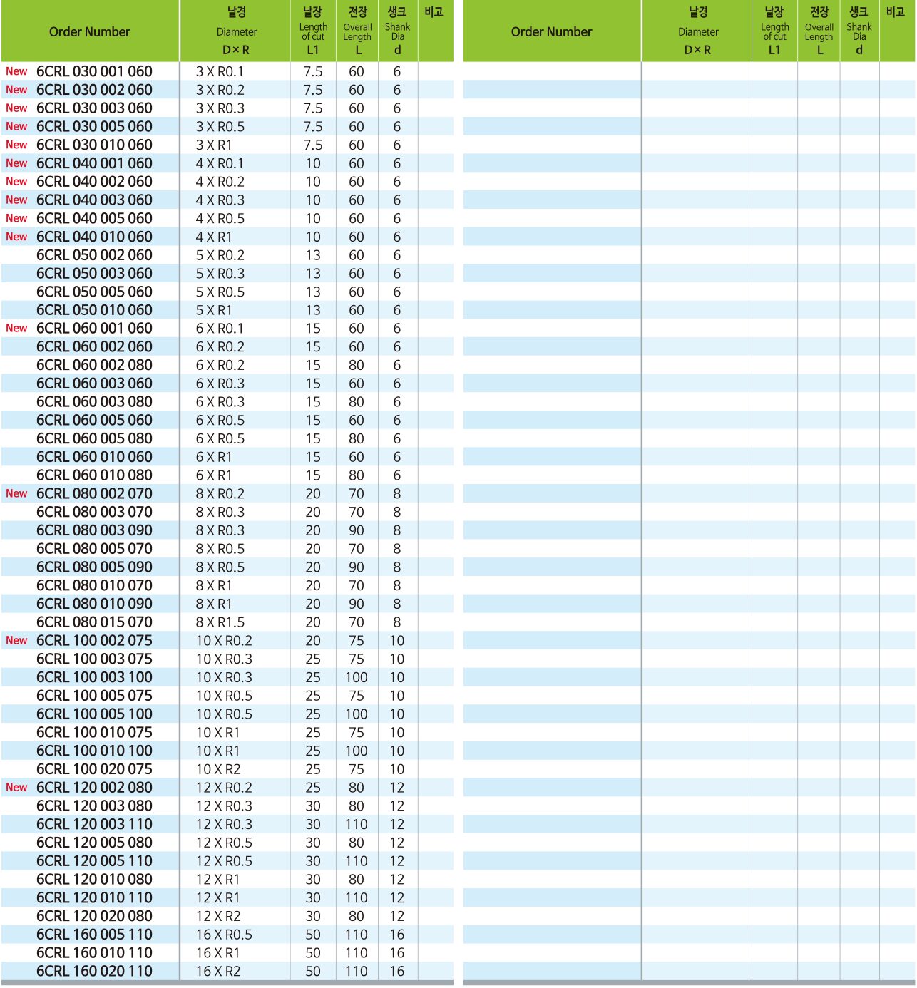 • Outstanding performance at high speed machining by ultra fine(0.2um) WC grade.