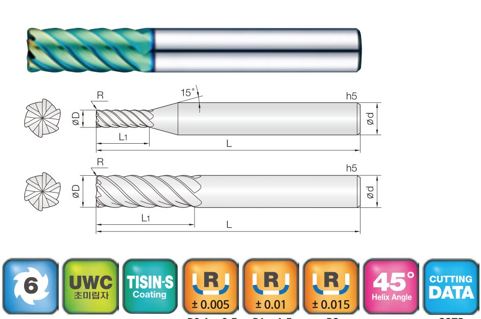 - Endmills for pre-hardened and hardened steel (HRc52~70)